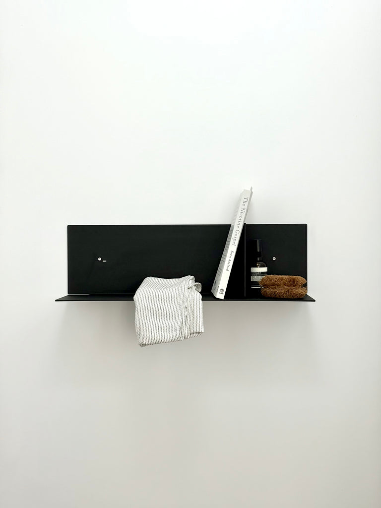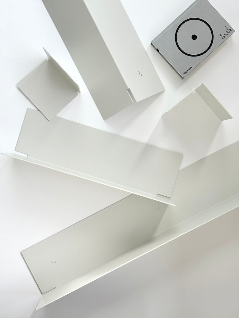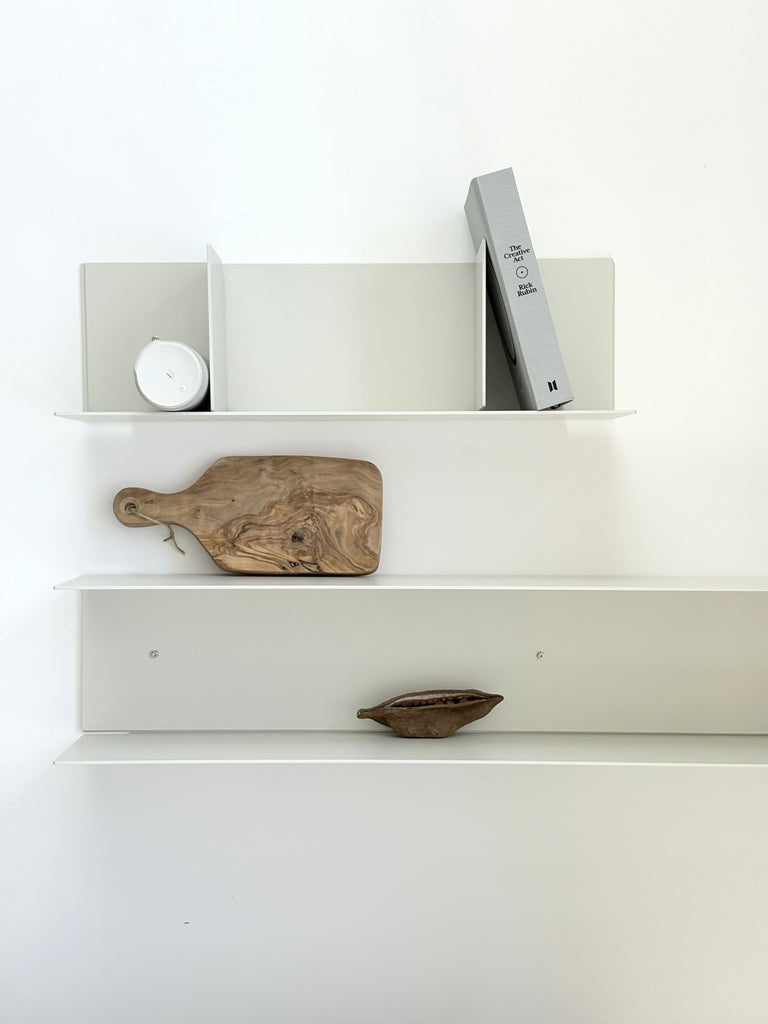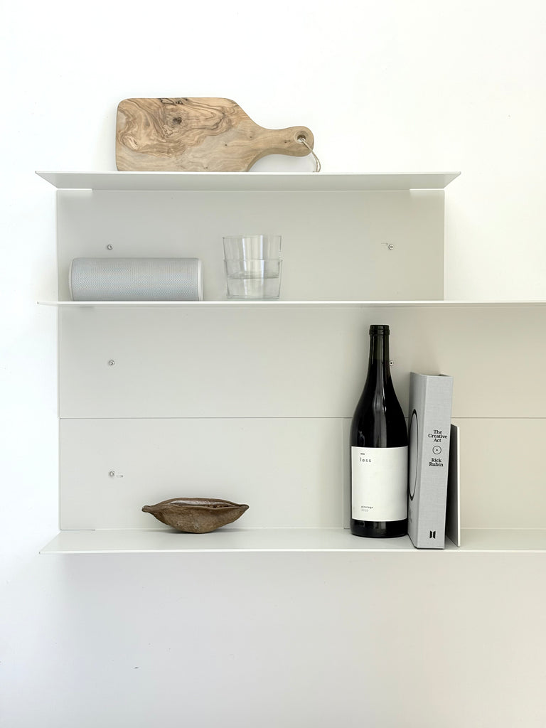Just a few simple elements that make for an array of configurations. The Mess Modular Shelf is sized to suit kitchen and bathroom accessories as well as smaller books (shelf depth 160mm), with cable slots for lights or tech.